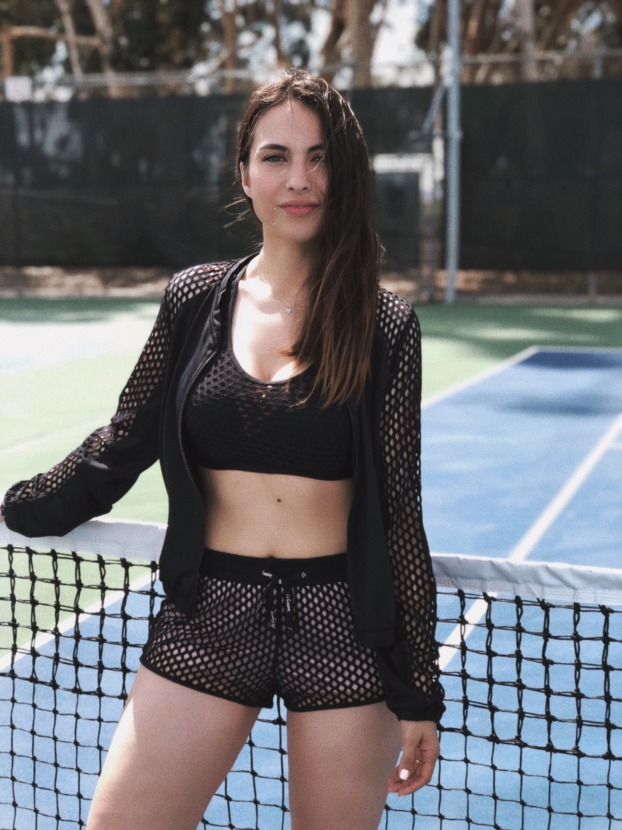 Also if you are a little chill or want to cover yourself after a hard workout, the la Senza fishnet bomber jacket would be a great option for you!! The one that I am wearing has some holes in the sleeves and back area, so is very good and fashionable for this warm weather!!!